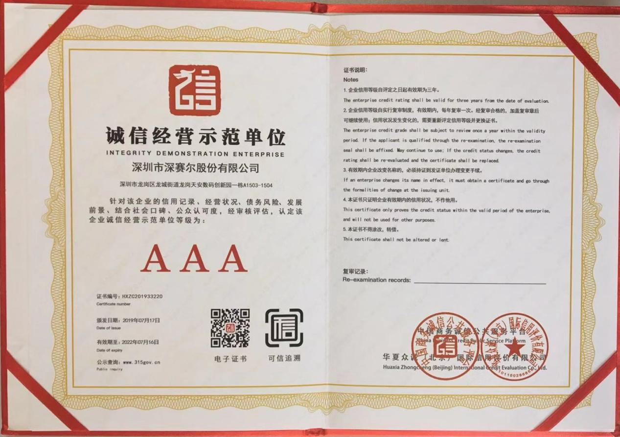 誠(chéng)信經(jīng)營(yíng)示范單位